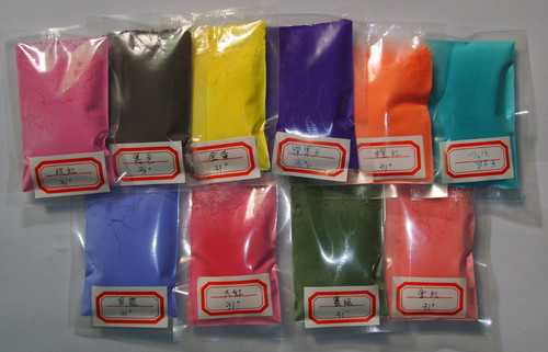 在大批量生产时可先将变色颜料加入聚乙烯蜡或聚苯乙烯蜡中制成颜料含量为10%的色母料,然后再与塑料粒子混合使用。这样可使变色颜料分散的更均匀。色母料的制备方法可参考本司提供的技术资料。