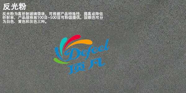 反光粉是生产反光布,反光贴膜,反光涂料、反光标牌、广告宣传材料、服饰材料、标准赛场跑道、鞋帽、书包、水陆空救生用品等新型光功能复合材料的核心原材料,它具有回归反光的特性并由此产生较强的回归反射效应,无需外加电源,可广泛用于道路、港口、矿山,消防等领域,作为安全标志,大大地提高了使用者的安全可靠性。