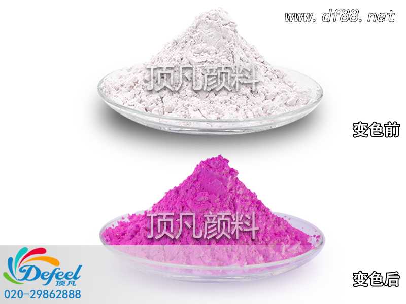 顶凡光变粉颜料,经阳光/紫外光照射,吸收阳光/紫外线的能量而产生变化(无色变有色), 当失去阳光/紫外线照射时,即回复到原来颜色。